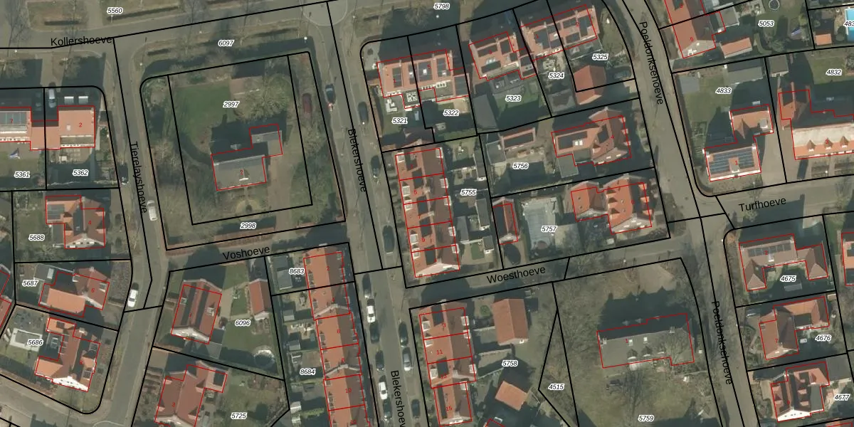 Blekershoeve 7 is gelegen op kadastraal perceel HMD00U5755. Deze kadastrale aanduiding is uniek en wordt gebruikt door het Kadaster om eigendomsrechten en andere zakelijke rechten vast te leggen. Het perceel maakt onderdeel uit van de kadastrale gemeente Helmond.