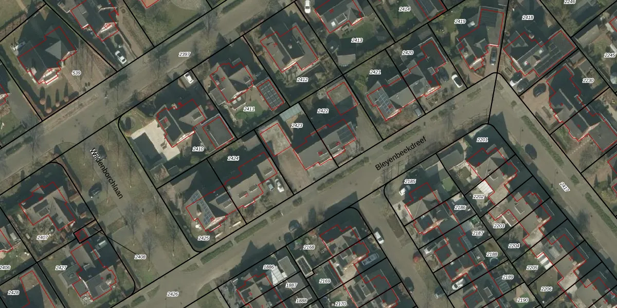 Het perceel waarop Bleyenbeekdreef 29 staat heeft een oppervlakte van 424 m². Dit is een groot perceel. De perceeloppervlakte wordt geregistreerd door het Kadaster. Gedetailleerde informatie over de maten van dit perceel kunt u vinden in het rapport Kadastrale kaart met maatvoering van Bleyenbeekdreef 29.
