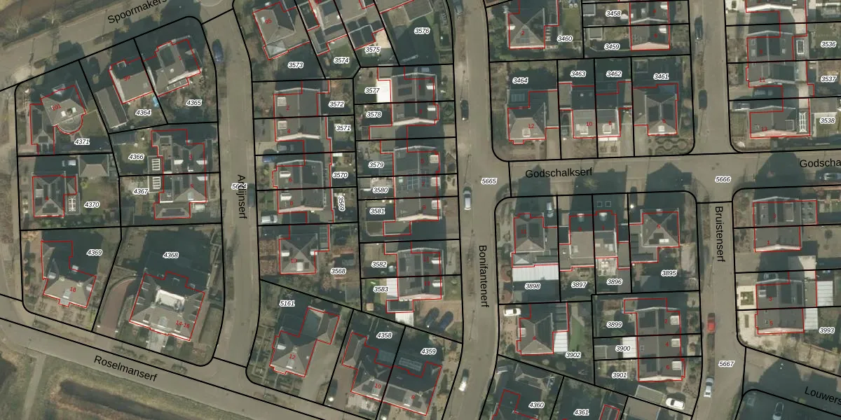 Het perceel waarop Bonifantenerf 9 staat heeft een oppervlakte van 246 m². Dit is een middelgroot perceel. De perceeloppervlakte wordt geregistreerd door het Kadaster. Gedetailleerde informatie over de maten van dit perceel kunt u vinden in het rapport Kadastrale kaart met maatvoering van Bonifantenerf 9.