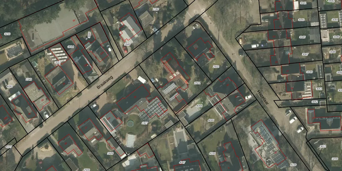 Braakweg 23-A is gelegen op kadastraal perceel SHT01B2501. Deze kadastrale aanduiding is uniek en wordt gebruikt door het Kadaster om eigendomsrechten en andere zakelijke rechten vast te leggen. Het perceel maakt onderdeel uit van de kadastrale gemeente Stiphout.