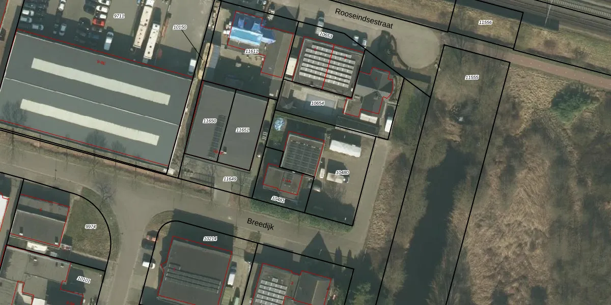 Gebruik de zoekbalk of klik op een perceel voor informatie over de adressen binnen dit perceel.