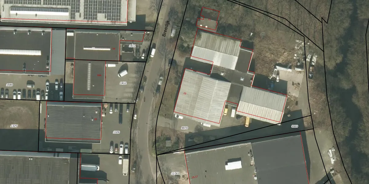 Het perceel waarop Breedijk 13 staat heeft een oppervlakte van 5195 m². Dit is een zeer groot perceel. De perceeloppervlakte wordt geregistreerd door het Kadaster. Gedetailleerde informatie over de maten van dit perceel kunt u vinden in het rapport Kadastrale kaart met maatvoering van Breedijk 13.