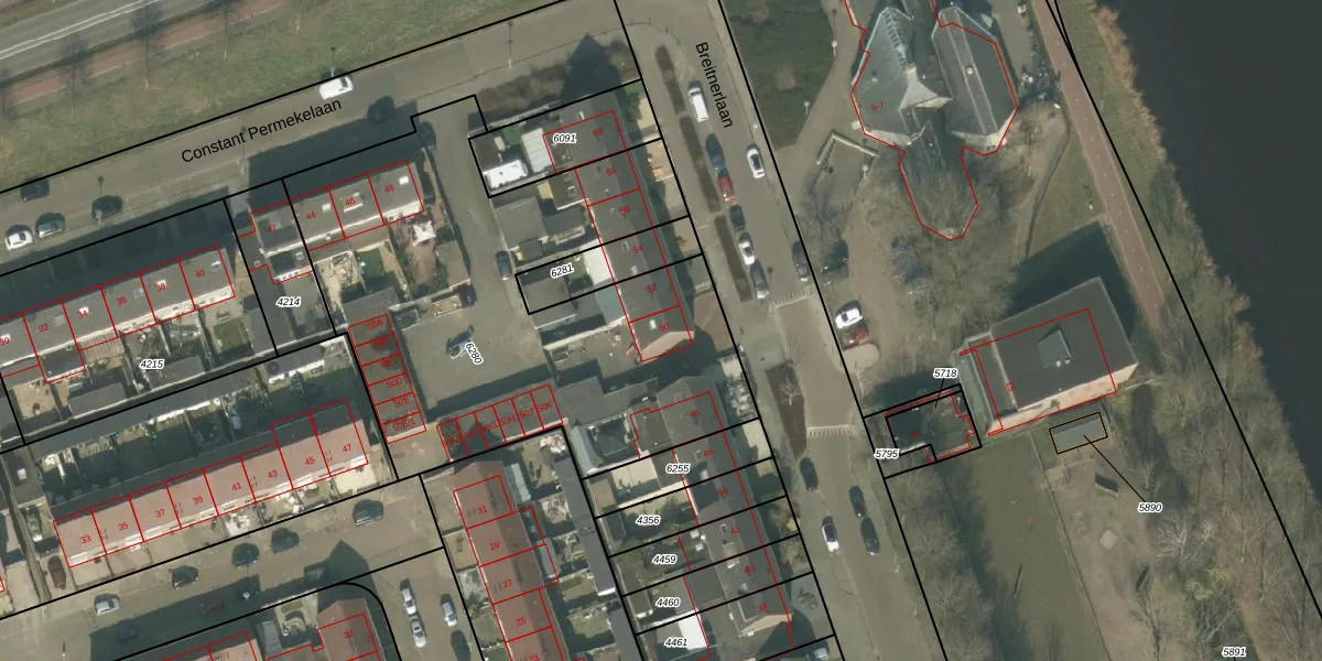 Het perceel waarop Breitnerlaan 50 staat heeft een oppervlakte van 2487 m². Dit is een zeer groot perceel. De perceeloppervlakte wordt geregistreerd door het Kadaster. Gedetailleerde informatie over de maten van dit perceel kunt u vinden in het rapport Kadastrale kaart met maatvoering van Breitnerlaan 50.