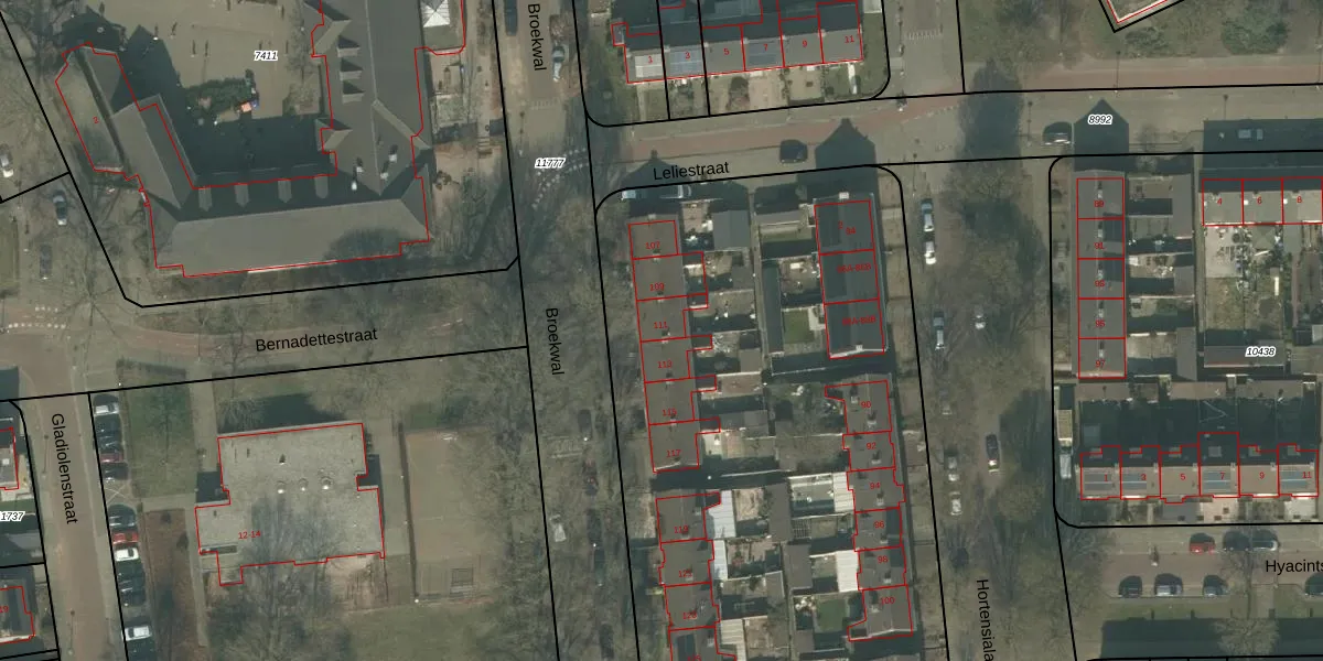Het perceel waarop Broekwal 111 staat heeft een oppervlakte van 6551 m². Dit is een zeer groot perceel. De perceeloppervlakte wordt geregistreerd door het Kadaster. Gedetailleerde informatie over de maten van dit perceel kunt u vinden in het rapport Kadastrale kaart met maatvoering van Broekwal 111.