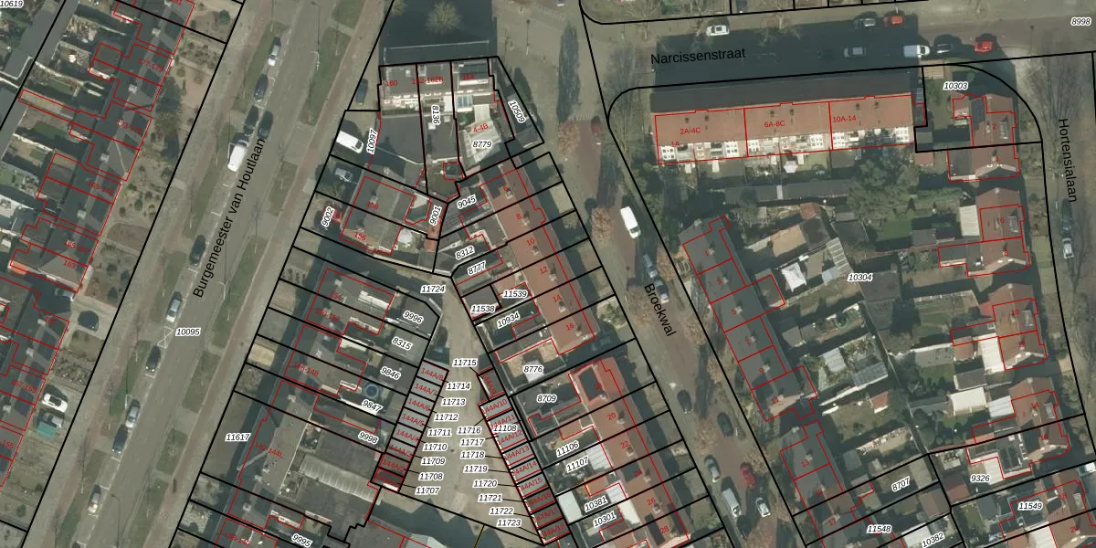 Het perceel waarop Broekwal 12 staat heeft een oppervlakte van 119 m². Dit is een middelgroot perceel. De perceeloppervlakte wordt geregistreerd door het Kadaster. Gedetailleerde informatie over de maten van dit perceel kunt u vinden in het rapport Kadastrale kaart met maatvoering van Broekwal 12.