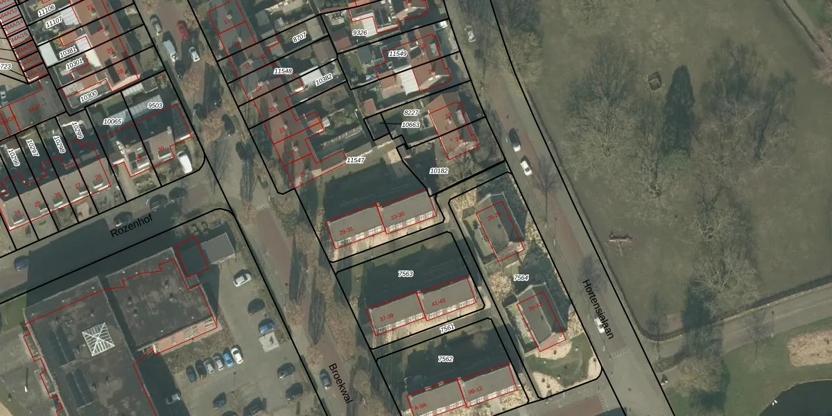 Het perceel waarop Broekwal 35 staat heeft een oppervlakte van 1303 m². Dit is een zeer groot perceel. De perceeloppervlakte wordt geregistreerd door het Kadaster. Gedetailleerde informatie over de maten van dit perceel kunt u vinden in het rapport Kadastrale kaart met maatvoering van Broekwal 35.