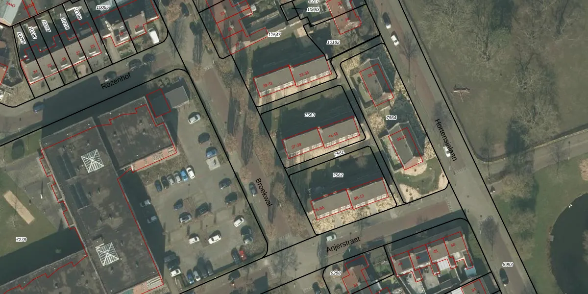 Het perceel waarop Broekwal 37 staat heeft een oppervlakte van 605 m². Dit is een groot perceel. De perceeloppervlakte wordt geregistreerd door het Kadaster. Gedetailleerde informatie over de maten van dit perceel kunt u vinden in het rapport Kadastrale kaart met maatvoering van Broekwal 37.