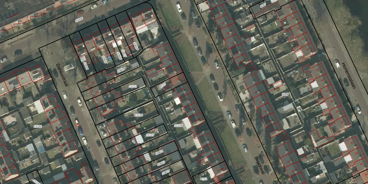 Het perceel waarop Broekwal 40 staat heeft een oppervlakte van 3959 m². Dit is een zeer groot perceel. De perceeloppervlakte wordt geregistreerd door het Kadaster. Gedetailleerde informatie over de maten van dit perceel kunt u vinden in het rapport Kadastrale kaart met maatvoering van Broekwal 40.