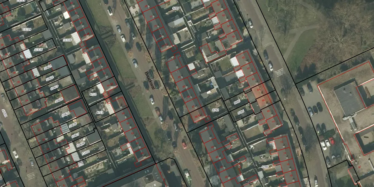 Het perceel waarop Broekwal 85 staat heeft een oppervlakte van 6397 m². Dit is een zeer groot perceel. De perceeloppervlakte wordt geregistreerd door het Kadaster. Gedetailleerde informatie over de maten van dit perceel kunt u vinden in het rapport Kadastrale kaart met maatvoering van Broekwal 85.