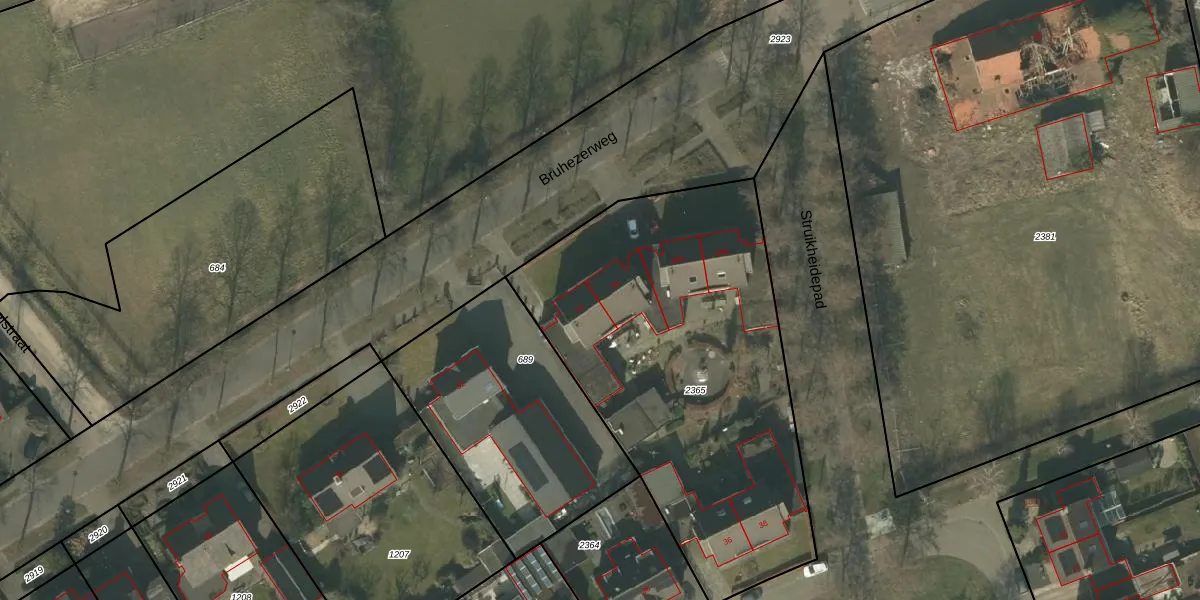 Het perceel waarop Bruhezerweg 34 staat heeft een oppervlakte van 2079 m². Dit is een zeer groot perceel. De perceeloppervlakte wordt geregistreerd door het Kadaster. Gedetailleerde informatie over de maten van dit perceel kunt u vinden in het rapport Kadastrale kaart met maatvoering van Bruhezerweg 34.