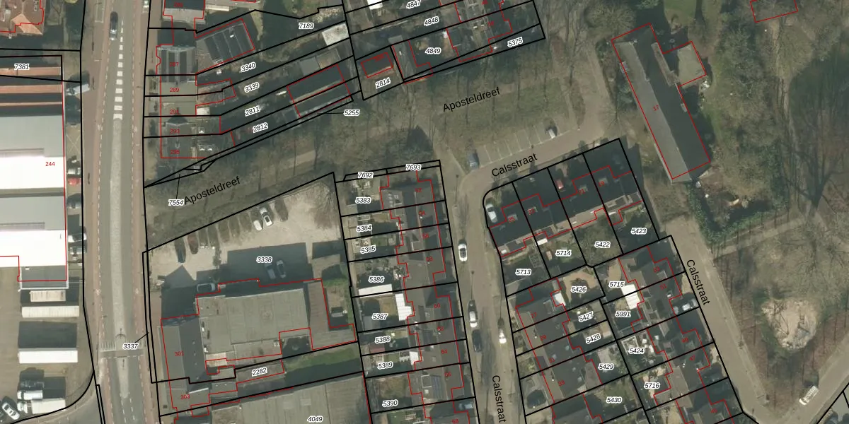 Calsstraat 54 is gelegen op kadastraal perceel HMD00T5384. Deze kadastrale aanduiding is uniek en wordt gebruikt door het Kadaster om eigendomsrechten en andere zakelijke rechten vast te leggen. Het perceel maakt onderdeel uit van de kadastrale gemeente Helmond.