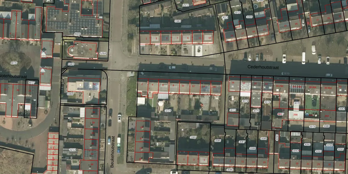 Het perceel waarop Cederhoutstraat 8 staat heeft een oppervlakte van 2111 m². Dit is een zeer groot perceel. De perceeloppervlakte wordt geregistreerd door het Kadaster. Gedetailleerde informatie over de maten van dit perceel kunt u vinden in het rapport Kadastrale kaart met maatvoering van Cederhoutstraat 8.