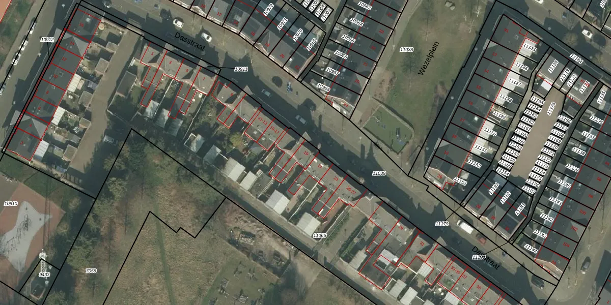 Het perceel waarop Dasstraat 19 staat heeft een oppervlakte van 8790 m². Dit is een zeer groot perceel. De perceeloppervlakte wordt geregistreerd door het Kadaster. Gedetailleerde informatie over de maten van dit perceel kunt u vinden in het rapport Kadastrale kaart met maatvoering van Dasstraat 19.