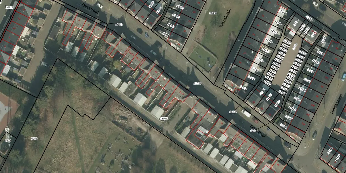 Dasstraat 23 is gelegen op kadastraal perceel HMD00C11066. Deze kadastrale aanduiding is uniek en wordt gebruikt door het Kadaster om eigendomsrechten en andere zakelijke rechten vast te leggen. Het perceel maakt onderdeel uit van de kadastrale gemeente Helmond.