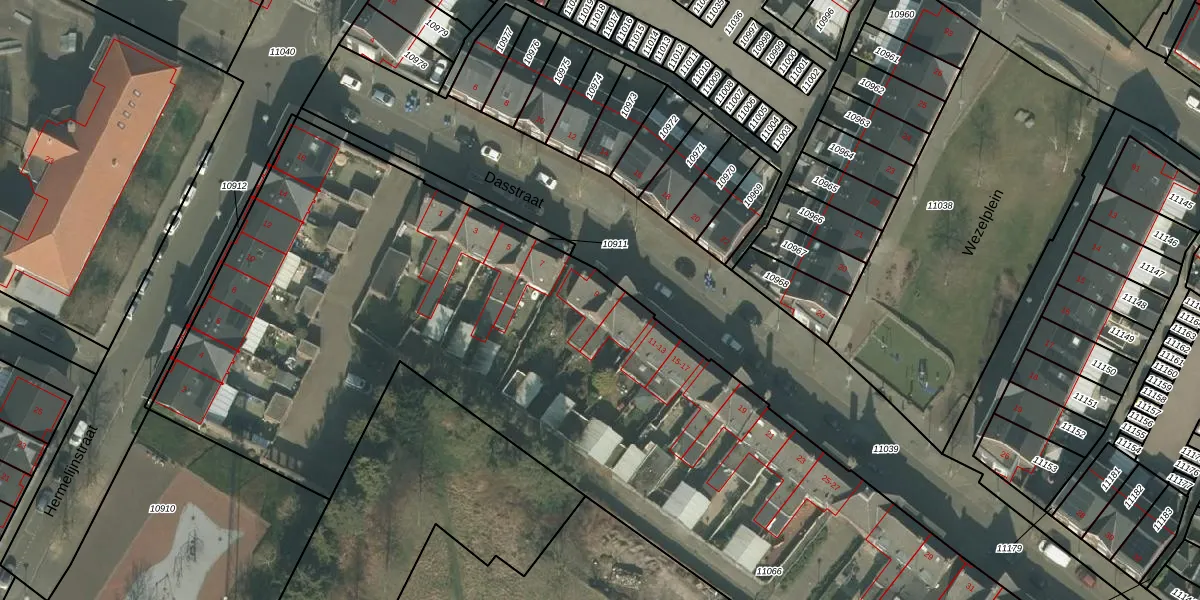 Dasstraat 9 is gelegen op kadastraal perceel HMD00C11066. Deze kadastrale aanduiding is uniek en wordt gebruikt door het Kadaster om eigendomsrechten en andere zakelijke rechten vast te leggen. Het perceel maakt onderdeel uit van de kadastrale gemeente Helmond.