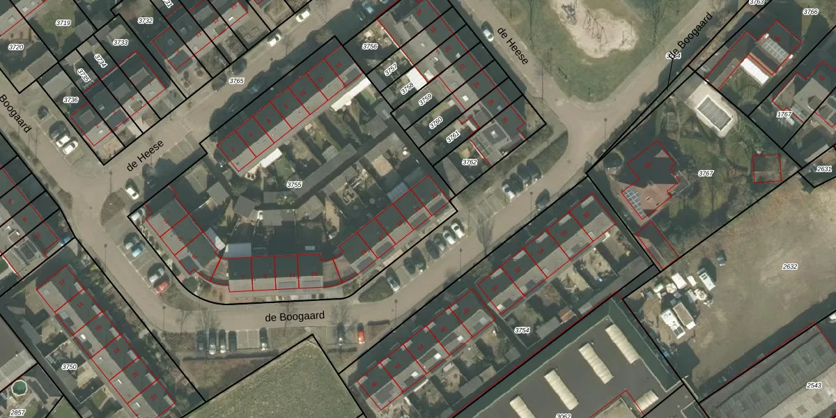de Boogaard 21 is gelegen op kadastraal perceel SHT01B3755. Deze kadastrale aanduiding is uniek en wordt gebruikt door het Kadaster om eigendomsrechten en andere zakelijke rechten vast te leggen. Het perceel maakt onderdeel uit van de kadastrale gemeente Stiphout.