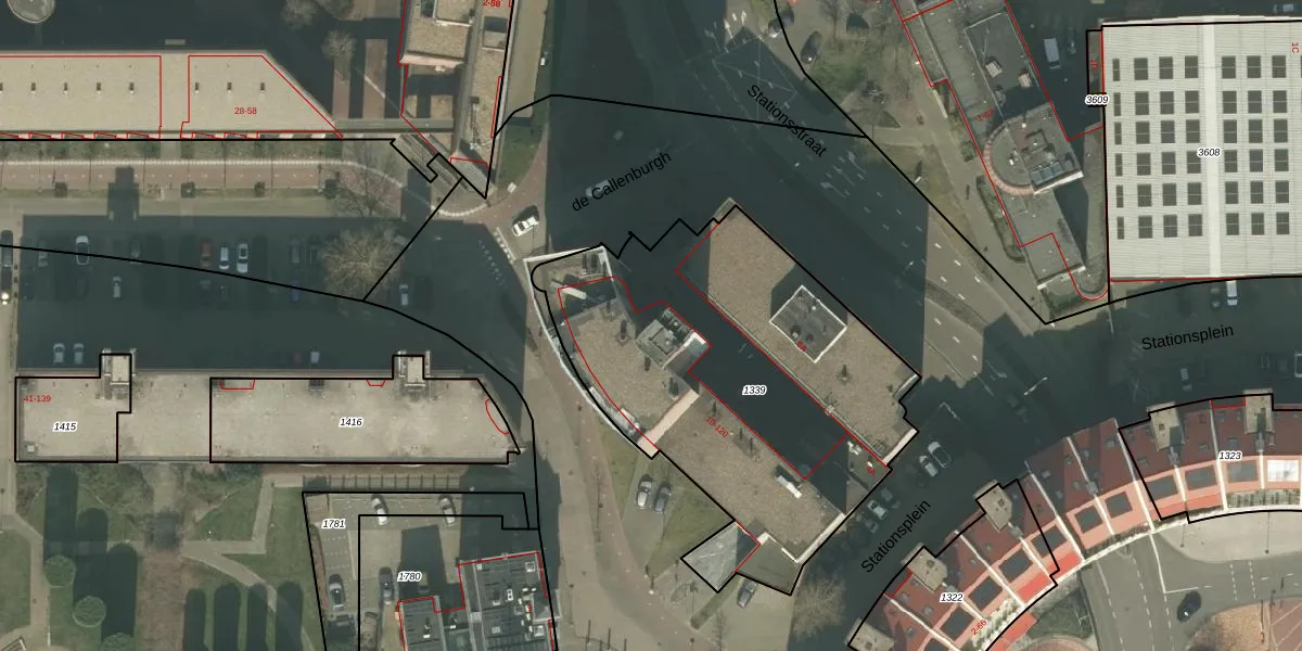 Het perceel waarop de Callenburgh 20 staat heeft een oppervlakte van 1963 m². Dit is een zeer groot perceel. De perceeloppervlakte wordt geregistreerd door het Kadaster. Gedetailleerde informatie over de maten van dit perceel kunt u vinden in het rapport Kadastrale kaart met maatvoering van de Callenburgh 20.