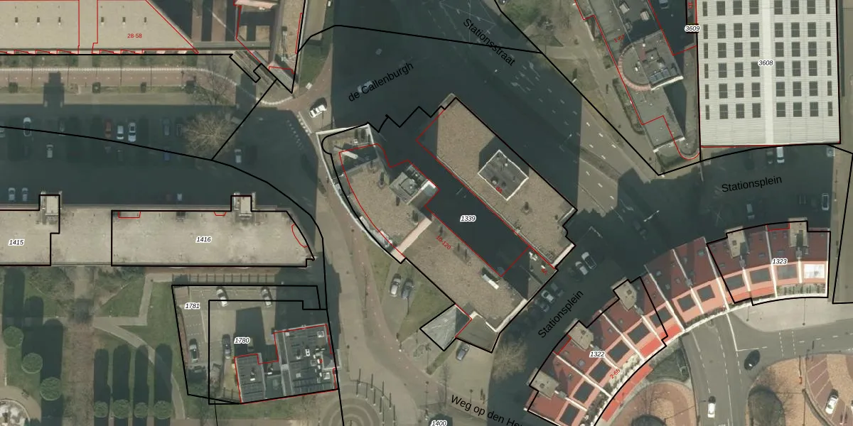 Het perceel waarop de Callenburgh 42 staat heeft een oppervlakte van 1963 m². Dit is een zeer groot perceel. De perceeloppervlakte wordt geregistreerd door het Kadaster. Gedetailleerde informatie over de maten van dit perceel kunt u vinden in het rapport Kadastrale kaart met maatvoering van de Callenburgh 42.