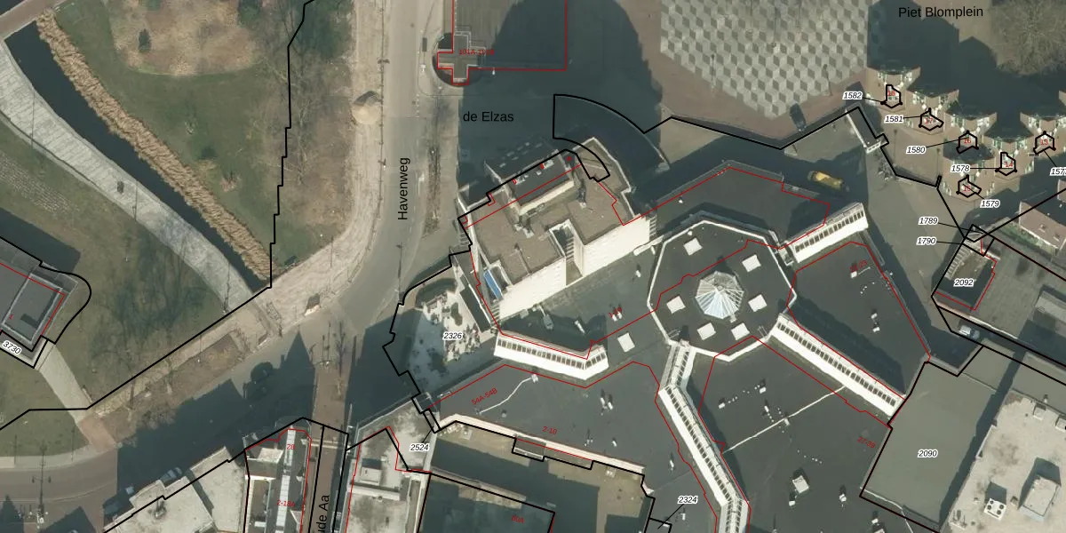 Het perceel waarop de Elzas 404 staat heeft een oppervlakte van 6444 m². Dit is een zeer groot perceel. De perceeloppervlakte wordt geregistreerd door het Kadaster. Gedetailleerde informatie over de maten van dit perceel kunt u vinden in het rapport Kadastrale kaart met maatvoering van de Elzas 404.
