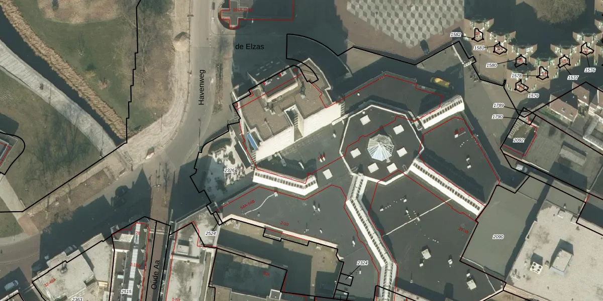 Het perceel waarop de Elzas 701 staat heeft een oppervlakte van 6444 m². Dit is een zeer groot perceel. De perceeloppervlakte wordt geregistreerd door het Kadaster. Gedetailleerde informatie over de maten van dit perceel kunt u vinden in het rapport Kadastrale kaart met maatvoering van de Elzas 701.