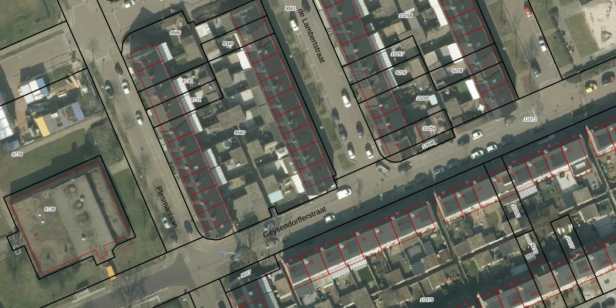 Het perceel waarop de Lambertstraat 17 staat heeft een oppervlakte van 2303 m². Dit is een zeer groot perceel. De perceeloppervlakte wordt geregistreerd door het Kadaster. Gedetailleerde informatie over de maten van dit perceel kunt u vinden in het rapport Kadastrale kaart met maatvoering van de Lambertstraat 17.