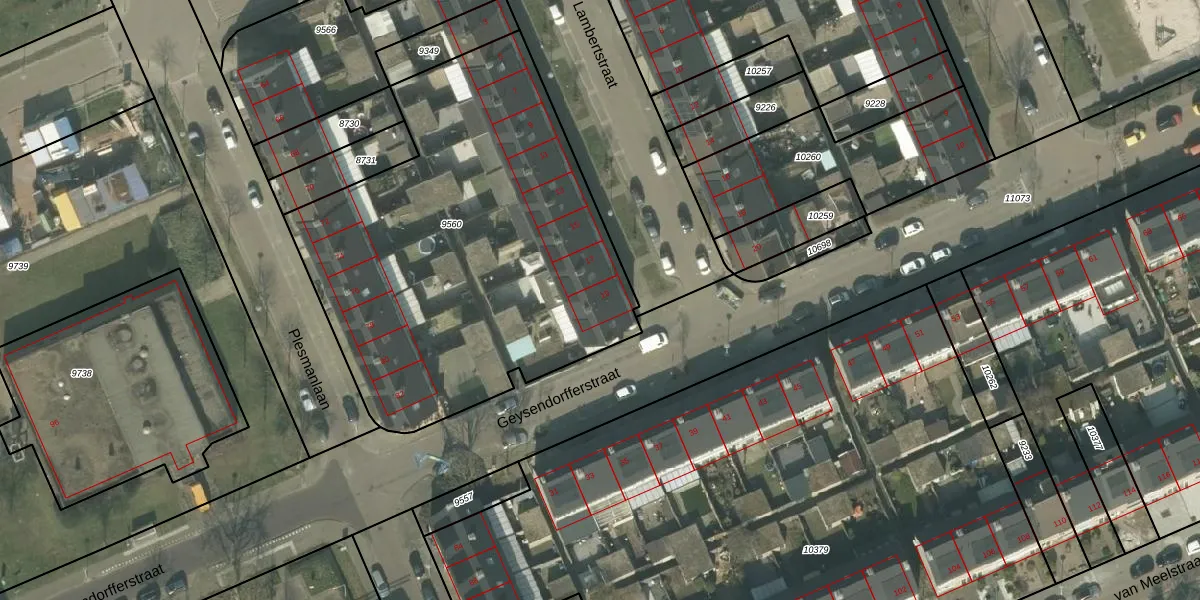 Het perceel waarop de Lambertstraat 19 staat heeft een oppervlakte van 2303 m². Dit is een zeer groot perceel. De perceeloppervlakte wordt geregistreerd door het Kadaster. Gedetailleerde informatie over de maten van dit perceel kunt u vinden in het rapport Kadastrale kaart met maatvoering van de Lambertstraat 19.