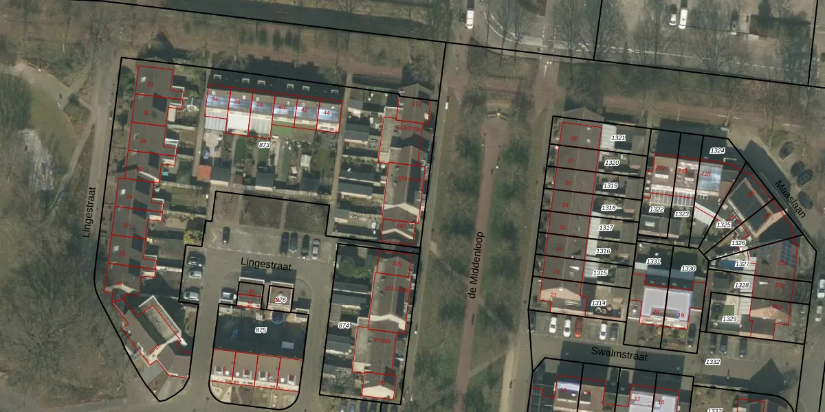 Het perceel waarop de Middenloop 109 staat heeft een oppervlakte van 3477 m². Dit is een zeer groot perceel. De perceeloppervlakte wordt geregistreerd door het Kadaster. Gedetailleerde informatie over de maten van dit perceel kunt u vinden in het rapport Kadastrale kaart met maatvoering van de Middenloop 109.