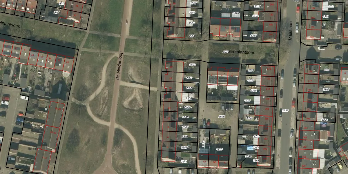 de Middenloop 16 is gelegen op kadastraal perceel HMD00O2551. Deze kadastrale aanduiding is uniek en wordt gebruikt door het Kadaster om eigendomsrechten en andere zakelijke rechten vast te leggen. Het perceel maakt onderdeel uit van de kadastrale gemeente Helmond.