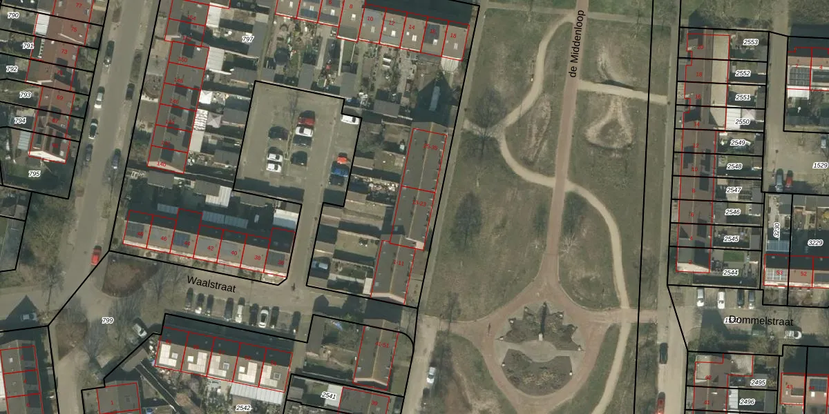 de Middenloop 19 is gelegen op kadastraal perceel HMD00O797. Deze kadastrale aanduiding is uniek en wordt gebruikt door het Kadaster om eigendomsrechten en andere zakelijke rechten vast te leggen. Het perceel maakt onderdeel uit van de kadastrale gemeente Helmond.