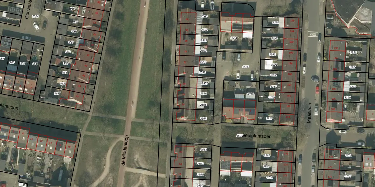 de Middenloop 26 is gelegen op kadastraal perceel HMD00O2556. Deze kadastrale aanduiding is uniek en wordt gebruikt door het Kadaster om eigendomsrechten en andere zakelijke rechten vast te leggen. Het perceel maakt onderdeel uit van de kadastrale gemeente Helmond.