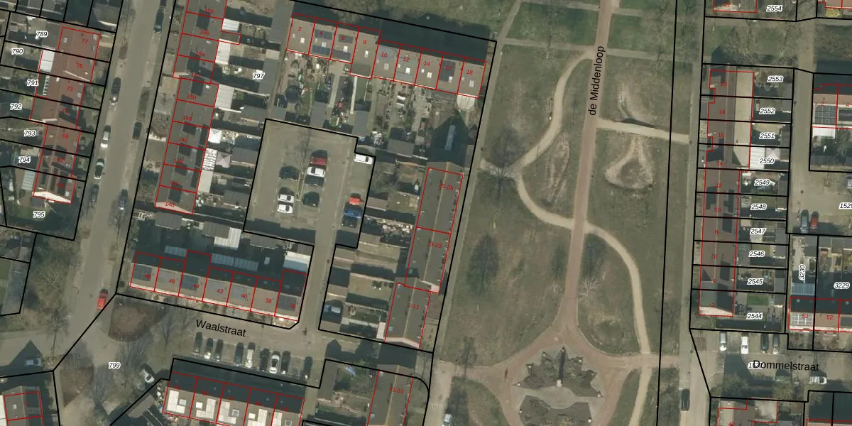 de Middenloop 33 is gelegen op kadastraal perceel HMD00O797. Deze kadastrale aanduiding is uniek en wordt gebruikt door het Kadaster om eigendomsrechten en andere zakelijke rechten vast te leggen. Het perceel maakt onderdeel uit van de kadastrale gemeente Helmond.
