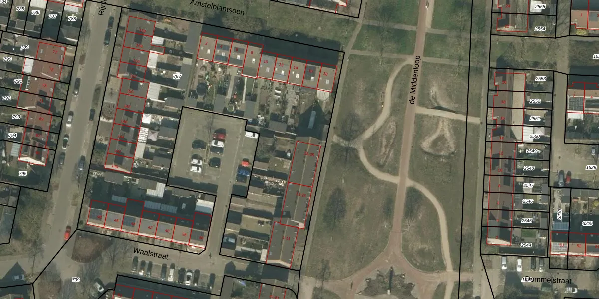 de Middenloop 35 is gelegen op kadastraal perceel HMD00O797. Deze kadastrale aanduiding is uniek en wordt gebruikt door het Kadaster om eigendomsrechten en andere zakelijke rechten vast te leggen. Het perceel maakt onderdeel uit van de kadastrale gemeente Helmond.