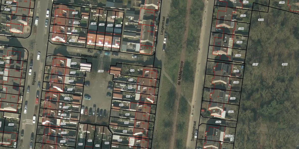 Het perceel waarop de Middenloop 93 staat heeft een oppervlakte van 227 m². Dit is een middelgroot perceel. De perceeloppervlakte wordt geregistreerd door het Kadaster. Gedetailleerde informatie over de maten van dit perceel kunt u vinden in het rapport Kadastrale kaart met maatvoering van de Middenloop 93.