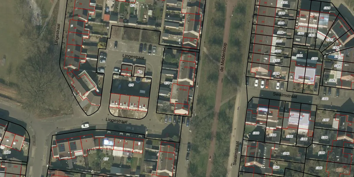 Het perceel waarop de Middenloop 99-A staat heeft een oppervlakte van 733 m². Dit is een groot perceel. De perceeloppervlakte wordt geregistreerd door het Kadaster. Gedetailleerde informatie over de maten van dit perceel kunt u vinden in het rapport Kadastrale kaart met maatvoering van de Middenloop 99-A.