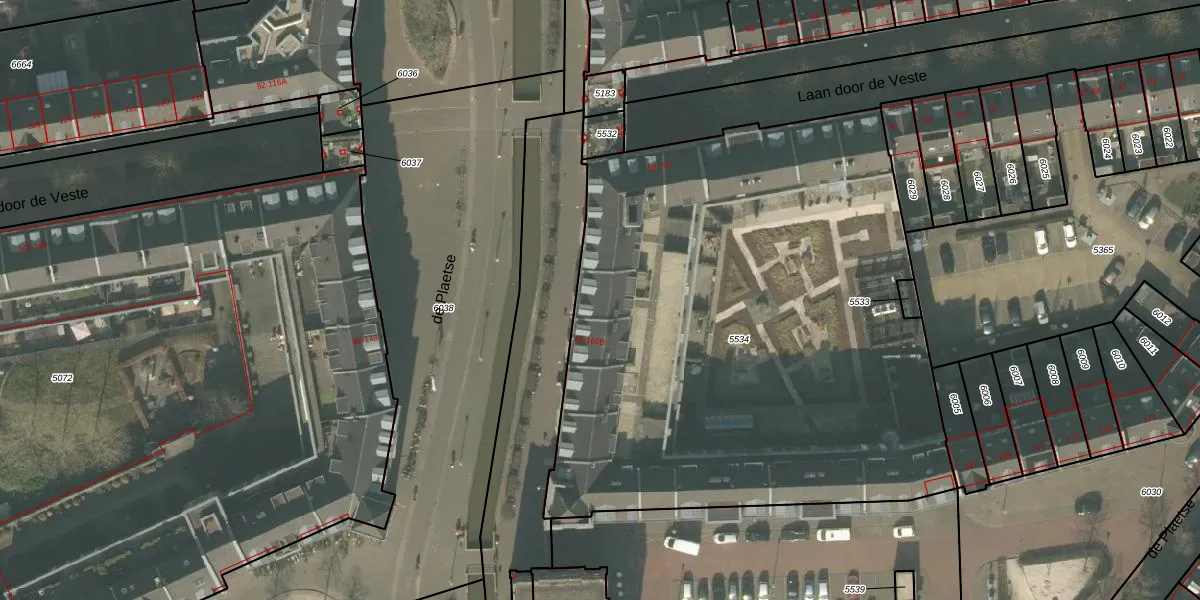 Het perceel waarop de Plaetse 87 staat heeft een oppervlakte van 3622 m². Dit is een zeer groot perceel. De perceeloppervlakte wordt geregistreerd door het Kadaster. Gedetailleerde informatie over de maten van dit perceel kunt u vinden in het rapport Kadastrale kaart met maatvoering van de Plaetse 87.