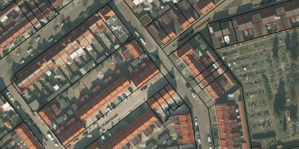 Het perceel waarop de Ruiterstraat 29 staat heeft een oppervlakte van 2400 m². Dit is een zeer groot perceel. De perceeloppervlakte wordt geregistreerd door het Kadaster. Gedetailleerde informatie over de maten van dit perceel kunt u vinden in het rapport Kadastrale kaart met maatvoering van de Ruiterstraat 29.