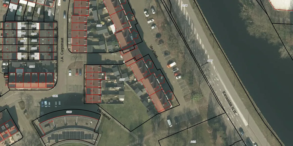 Het perceel waarop de Vloet 21 staat heeft een oppervlakte van 2138 m². Dit is een zeer groot perceel. De perceeloppervlakte wordt geregistreerd door het Kadaster. Gedetailleerde informatie over de maten van dit perceel kunt u vinden in het rapport Kadastrale kaart met maatvoering van de Vloet 21.