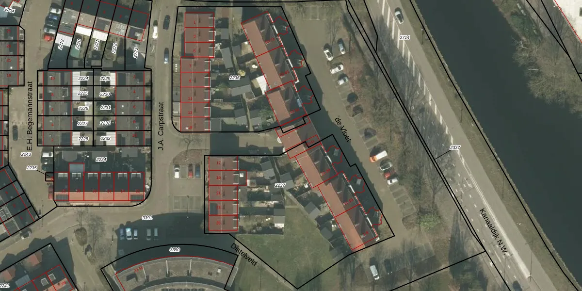 Het perceel waarop de Vloet 35 staat heeft een oppervlakte van 1,6 ha. Dit is een zeer groot perceel. De perceeloppervlakte wordt geregistreerd door het Kadaster. Gedetailleerde informatie over de maten van dit perceel kunt u vinden in het rapport Kadastrale kaart met maatvoering van de Vloet 35.