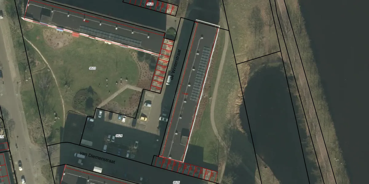 Het perceel waarop de Winterstraat 12 staat heeft een oppervlakte van 1,0 ha. Dit is een zeer groot perceel. De perceeloppervlakte wordt geregistreerd door het Kadaster. Gedetailleerde informatie over de maten van dit perceel kunt u vinden in het rapport Kadastrale kaart met maatvoering van de Winterstraat 12.