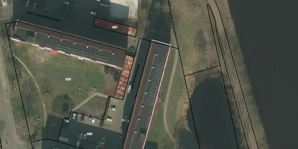 Het perceel waarop de Winterstraat 14 staat heeft een oppervlakte van 1,0 ha. Dit is een zeer groot perceel. De perceeloppervlakte wordt geregistreerd door het Kadaster. Gedetailleerde informatie over de maten van dit perceel kunt u vinden in het rapport Kadastrale kaart met maatvoering van de Winterstraat 14.