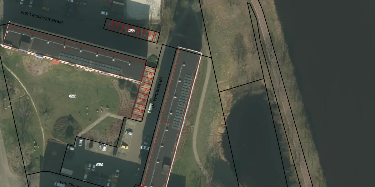 Het perceel waarop de Winterstraat 46 staat heeft een oppervlakte van 1,0 ha. Dit is een zeer groot perceel. De perceeloppervlakte wordt geregistreerd door het Kadaster. Gedetailleerde informatie over de maten van dit perceel kunt u vinden in het rapport Kadastrale kaart met maatvoering van de Winterstraat 46.