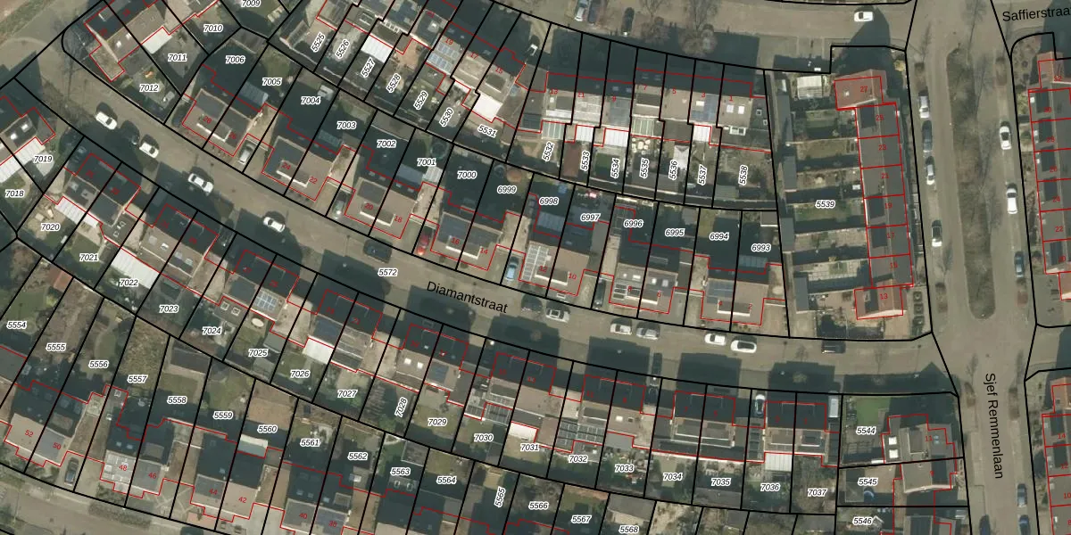 Het perceel waarop Diamantstraat 12 staat heeft een oppervlakte van 184 m². Dit is een middelgroot perceel. De perceeloppervlakte wordt geregistreerd door het Kadaster. Gedetailleerde informatie over de maten van dit perceel kunt u vinden in het rapport Kadastrale kaart met maatvoering van Diamantstraat 12.