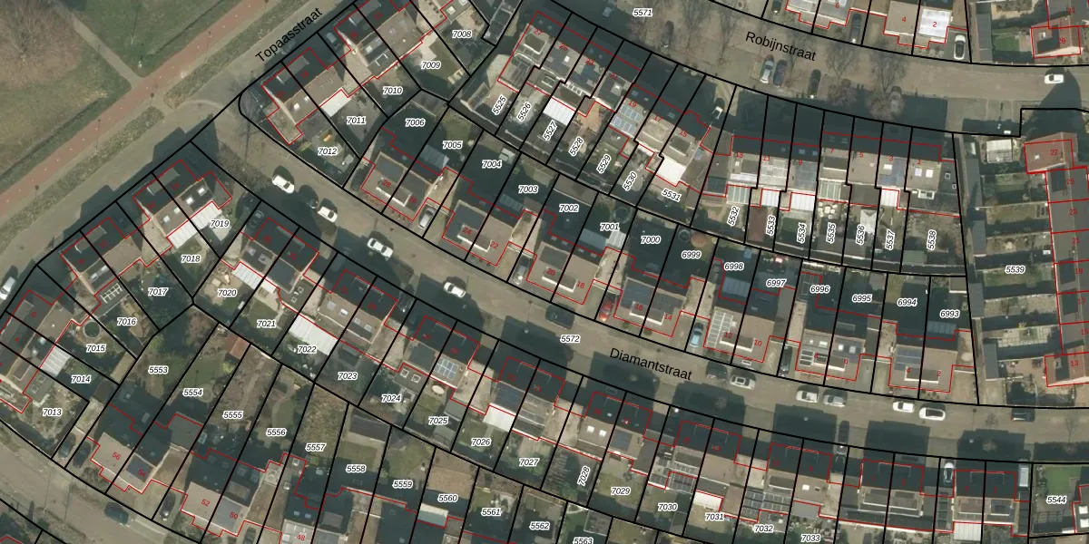 Het perceel waarop Diamantstraat 20 staat heeft een oppervlakte van 187 m². Dit is een middelgroot perceel. De perceeloppervlakte wordt geregistreerd door het Kadaster. Gedetailleerde informatie over de maten van dit perceel kunt u vinden in het rapport Kadastrale kaart met maatvoering van Diamantstraat 20.