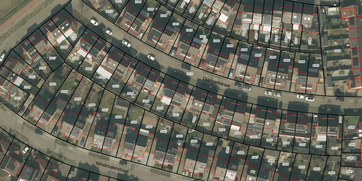 Het perceel waarop Diamantstraat 21 staat heeft een oppervlakte van 200 m². Dit is een middelgroot perceel. De perceeloppervlakte wordt geregistreerd door het Kadaster. Gedetailleerde informatie over de maten van dit perceel kunt u vinden in het rapport Kadastrale kaart met maatvoering van Diamantstraat 21.