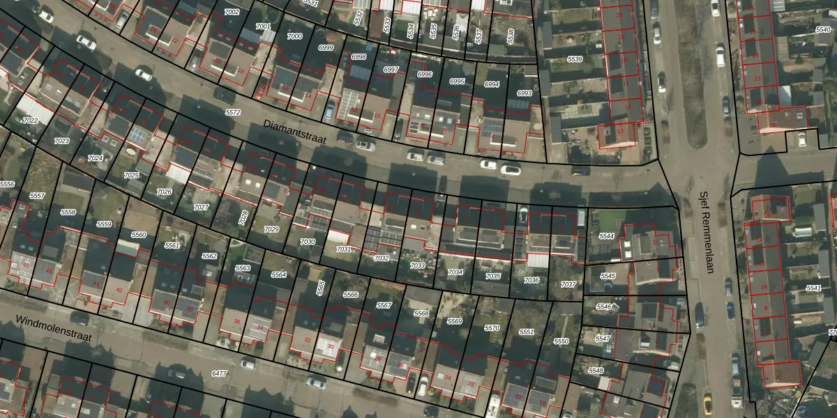 Het perceel waarop Diamantstraat 9 staat heeft een oppervlakte van 200 m². Dit is een middelgroot perceel. De perceeloppervlakte wordt geregistreerd door het Kadaster. Gedetailleerde informatie over de maten van dit perceel kunt u vinden in het rapport Kadastrale kaart met maatvoering van Diamantstraat 9.