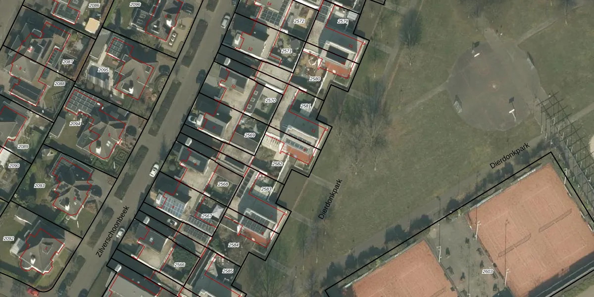 Het perceel waarop Dierdonkpark 9 staat heeft een oppervlakte van 362 m². Dit is een groot perceel. De perceeloppervlakte wordt geregistreerd door het Kadaster. Gedetailleerde informatie over de maten van dit perceel kunt u vinden in het rapport Kadastrale kaart met maatvoering van Dierdonkpark 9.