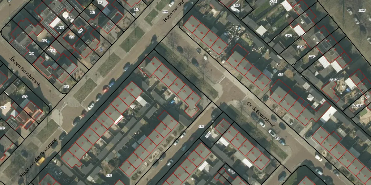 Het perceel waarop Dirck Boutsstraat 27 staat heeft een oppervlakte van 4143 m². Dit is een zeer groot perceel. De perceeloppervlakte wordt geregistreerd door het Kadaster. Gedetailleerde informatie over de maten van dit perceel kunt u vinden in het rapport Kadastrale kaart met maatvoering van Dirck Boutsstraat 27.