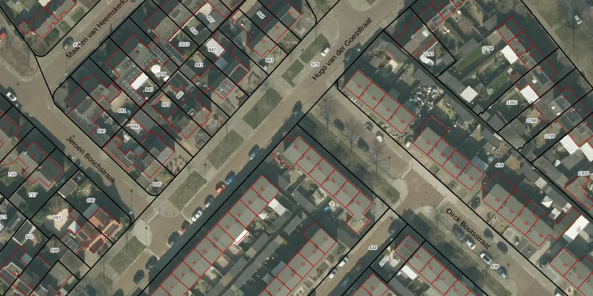 Het perceel waarop Dirck Boutsstraat 35 staat heeft een oppervlakte van 4143 m². Dit is een zeer groot perceel. De perceeloppervlakte wordt geregistreerd door het Kadaster. Gedetailleerde informatie over de maten van dit perceel kunt u vinden in het rapport Kadastrale kaart met maatvoering van Dirck Boutsstraat 35.