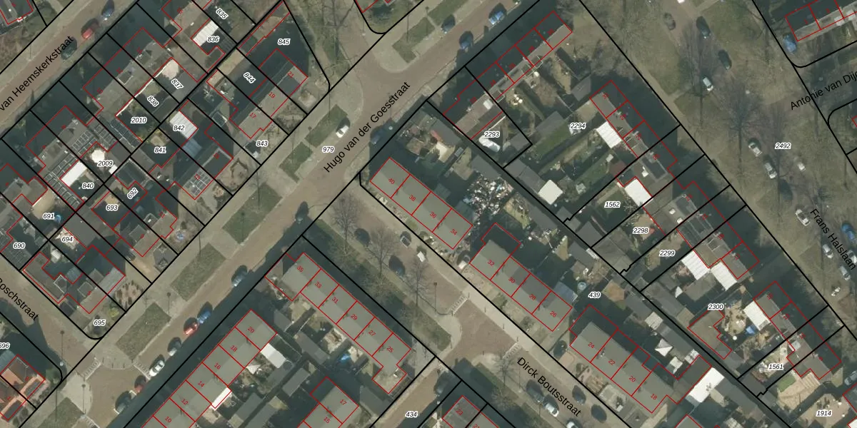 Het perceel waarop Dirck Boutsstraat 36 staat heeft een oppervlakte van 3702 m². Dit is een zeer groot perceel. De perceeloppervlakte wordt geregistreerd door het Kadaster. Gedetailleerde informatie over de maten van dit perceel kunt u vinden in het rapport Kadastrale kaart met maatvoering van Dirck Boutsstraat 36.