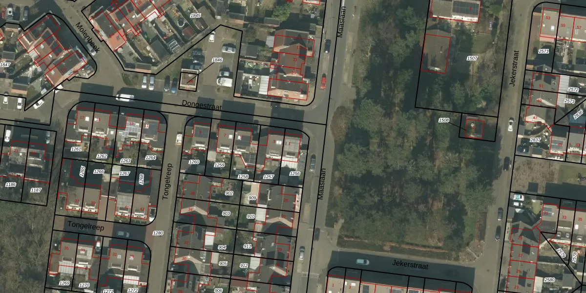 Dongestraat 1 is gelegen op kadastraal perceel HMD00O1256. Deze kadastrale aanduiding is uniek en wordt gebruikt door het Kadaster om eigendomsrechten en andere zakelijke rechten vast te leggen. Het perceel maakt onderdeel uit van de kadastrale gemeente Helmond.